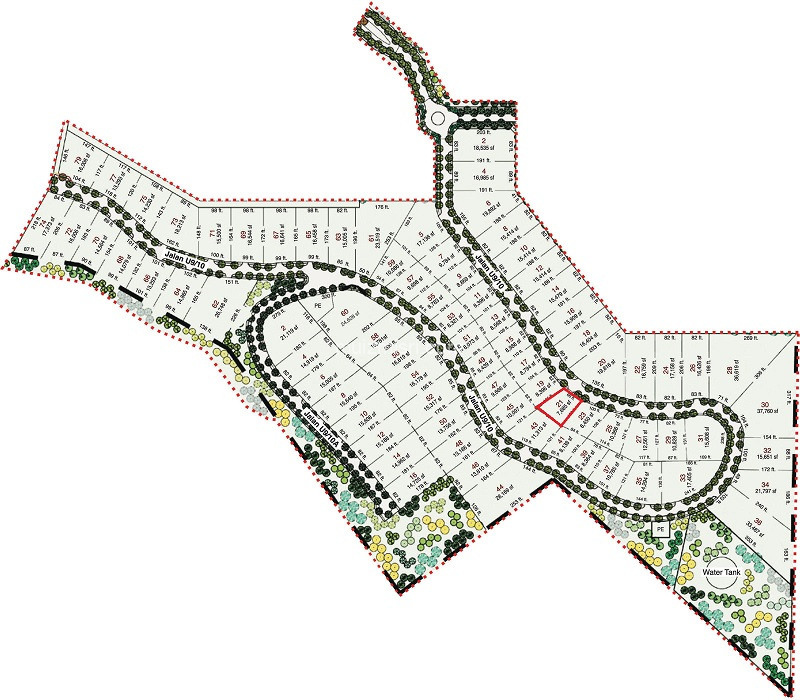Keadaan Tanah : “Elevated” dan dipenuhi pokok